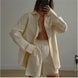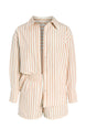 Casual Striped Long-Sleeve Shirt and High-Waisted Shorts Set