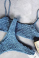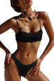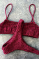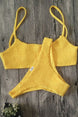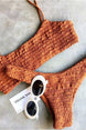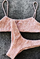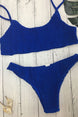 Two piece solid colour swimsuit featuring a shirred fabric design.