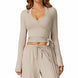 Experience ultimate freedom and chic style in our long sleeve tie yoga top, perfect for any season.