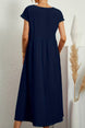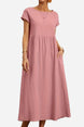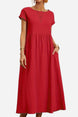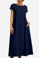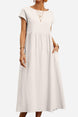 Capped-sleeve, Voluminous Pleated Midi Dress