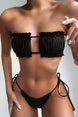 Hollow Pleated Multi-Color Split Bikini Swimsuit